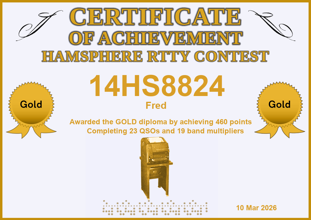 | HamSphere RTTY Contest. Work as many stations you can using RTTY mode under 24 hours. You can enhance your final score by making band multipliers. |
