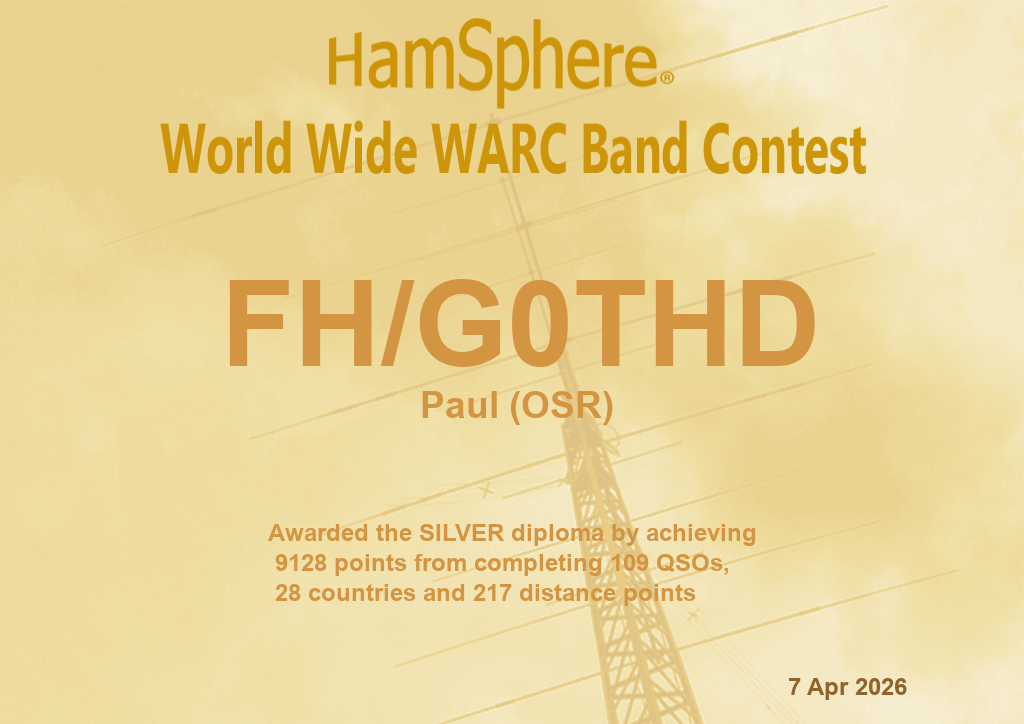 | HamSphere DXHC 80m and 160m Championship 2025 | 2025-12-06 06:00:00 | 2025-12-07 06:00:00 | 2025-12-08 12:00:00 | VIEW | ||||